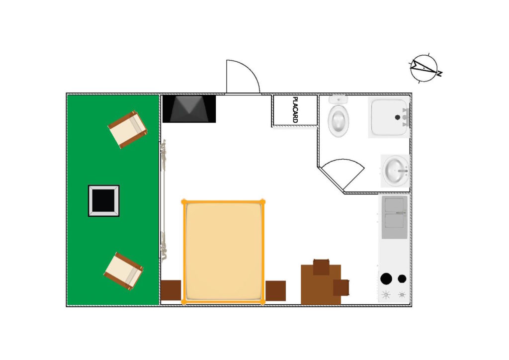 Appartement en rez-de-chaussée avec un jardin privatif, se compose d’une pièce principale, lit de 160cm, cuisine ouverte entièrement équipée, salle de bain avec douche et toilettes.
